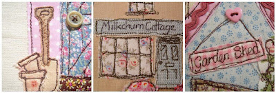 Next is a quilted patchwork cushion with a vintage vibe. This one is NOT on Wonderful Mans sofa but sitting prettily in my Folksy shop waiting for someone with infinite good taste and a space on their bed/chair for a some embroidered and patched scrummyness.